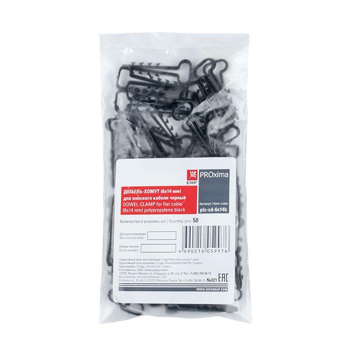 Дюбель-хомут d6х14мм для плоского кабеля полипропилен черн. (уп.50шт) EKF plc-cd-6x14b