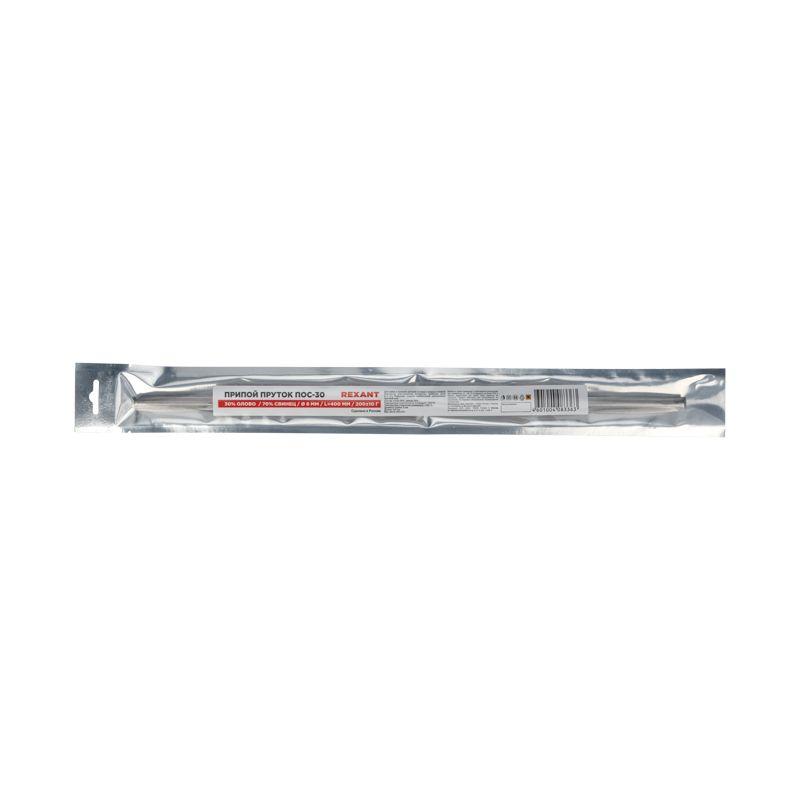 Припой пруток ПОС-30 d8 мм REXANT предназначен для создания механически прочного и герметичного соединения деталей между собой или для их фиксирования на плате (пайка и лужение радиоэлектронных приборов, медицинской аппаратуры, автодеталей, печатных плат, электроаппаратуры и т.д.).