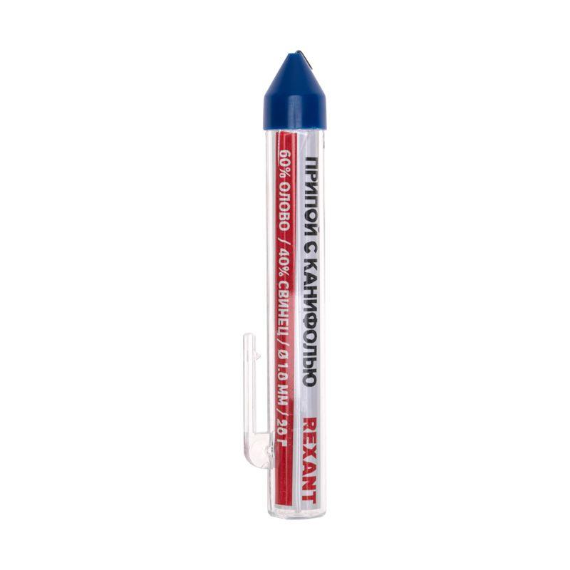 Припой с канифолью REXANT представляет собой проволоку (диаметром 1 мм) из сплава олова (60 %) и свинца (40 %). Используется в пайке для соединения деталей между собой и позволяет создать герметичный, механически прочный (устойчивый) шов. Нагреваясь до температуры плавления (183…188 °C) припой: расплавляется, смачивает спаиваемый металл и, растекаясь по нему — заполняет место между соединяемыми деталями.