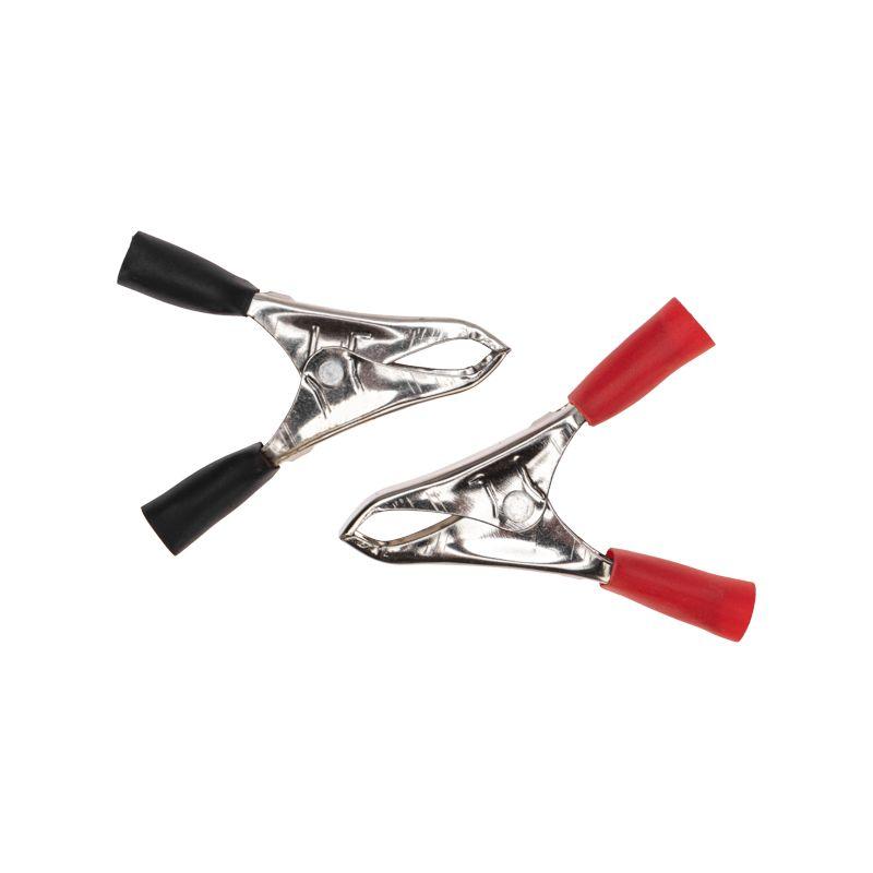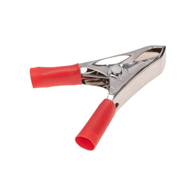 Зажим “крокодил” 10А 50мм REхANT представляет собой электромеханическое устройство, предназначенное для оперативного соединения или разъединения контакта проводов при выполнении измерительных работ или монтажа электрических и слаботочных сетей. Зажим получил свое название за схожесть с челюстями крокодила. Состоит он из двух фигурных деталей с «крокодильими» зубцами, скрепленных серединами специальным штифтом и способных поворачиваться на некоторый угол вокруг оси соединения. К одной из деталей монтируется контактный провод. Сжатие «челюстей» обеспечивается пружиной, вставленной с другой стороны штифта. Контактная часть изделия изготавливается из стали с никелированным покрытием. В целях безопасной эксплуатации зажима, ручки имеют изоляцию, изготовленную из ПВХ, что предохранит от поражения специалиста электрическим током. Чаще всего зажимы применяются парами черного и красного цвета (50/50). Основные характеристики: