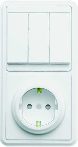 Блок БКВР-036 Бэлла (3-кл. выкл. + евророзетка с защ. шторками) бел. Кунцево 5847