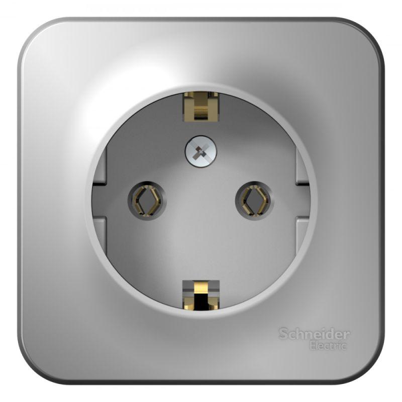 Розетка Systeme Electric (ранее Schneider Electric) BLANCA (алюминий, открытой установки) одноместная, без шторок, с заземлением и изолирующей пластиной предназначена для сетей до 250В, на ток до 16А. Заземление обеспечивает безопасность при косвенном прикосновении. Она изготовлена из ABS-пластика, проста в установке и удобна в применении.