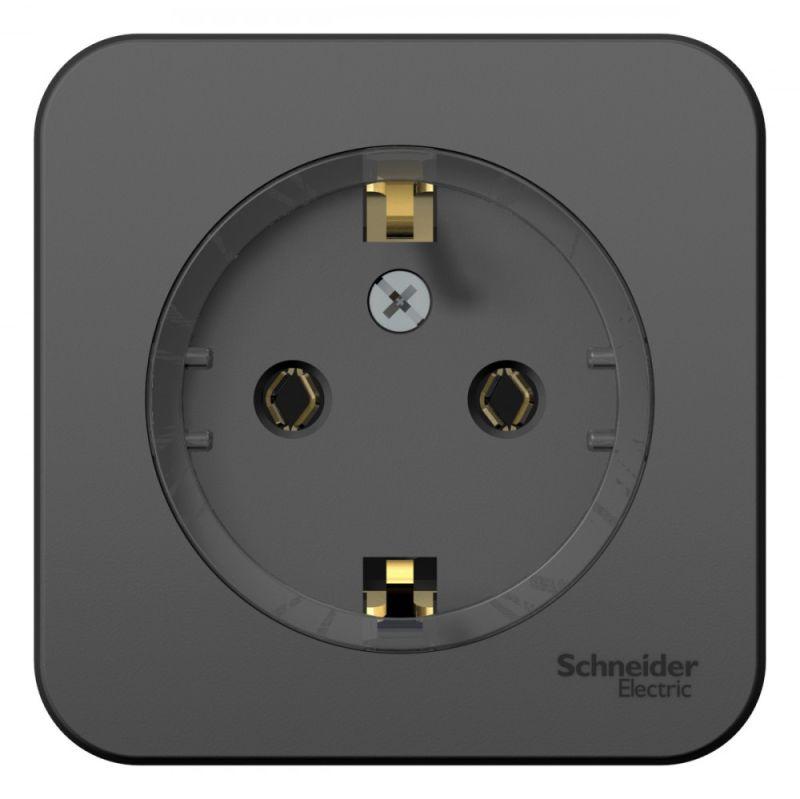Розетка Systeme Electric (ранее Schneider Electric) BLANCA (антрацит, открытой установки) одноместная, с заземлением, без шторок предназначена для сетей до 250В, на ток до 16А. Заземление обеспечивает безопасность при косвенном прикосновении. Она изготовлена из ABS-пластика, проста в установке и удобна в применении.