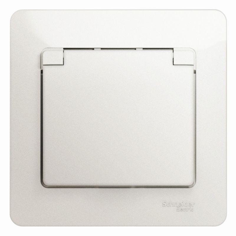 Розетка Systeme Electric (ранее Schneider Electric) серии Glossa (в сборе, цвет перламутр) одинарная с заземлением, шторками и крышкой подходит для сетей 250 В, на ток 16 А.