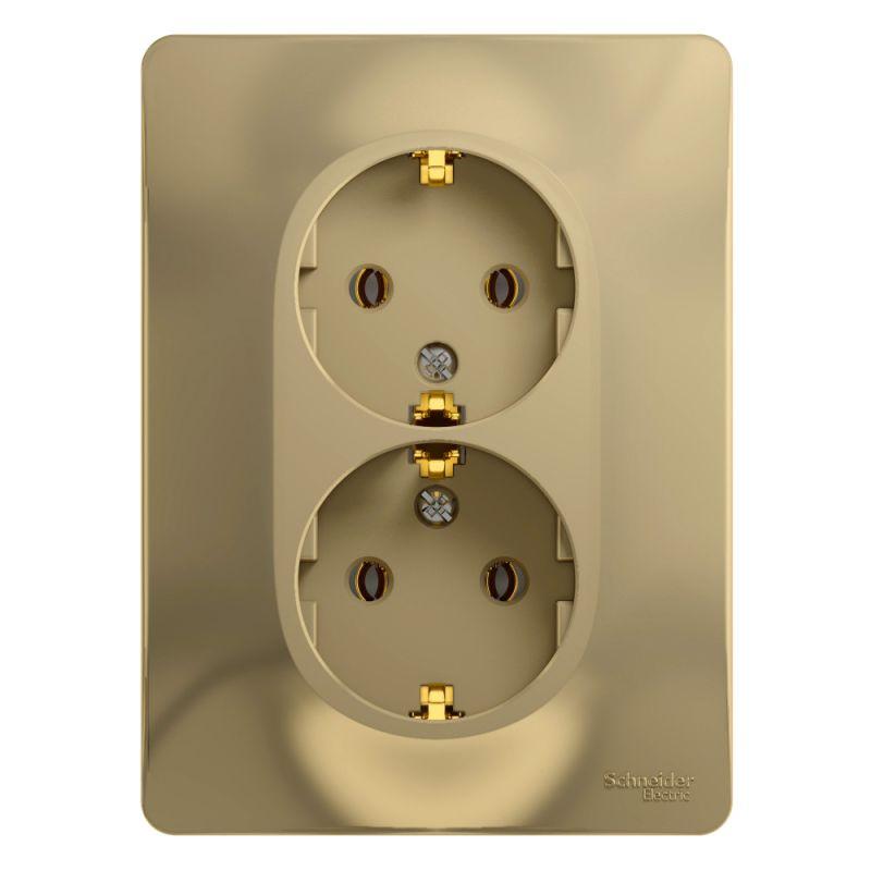 Розетка двойная Systeme Electric (ранее Schneider Electric) серии Glossa (в сборе, цвет титан) с заземлением, без шторок подходит для сетей 250 В, на ток 16 А.
