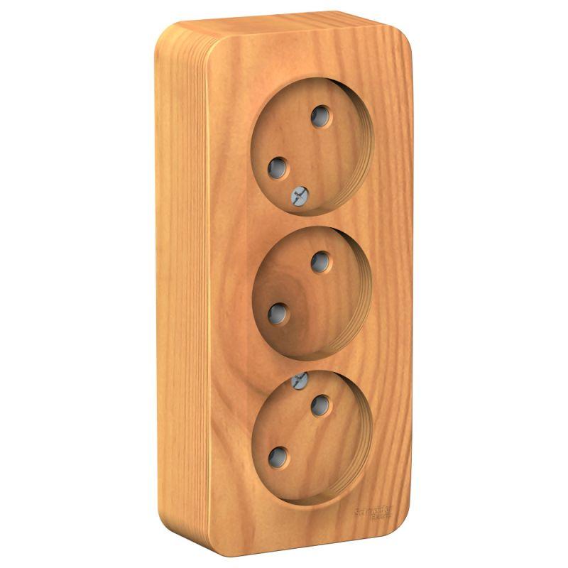 Розетка Systeme Electric (ранее Schneider Electric) BLANCA (ясень, открытой установки) трехместная, без шторок и заземления, с изолирующей пластиной предназначена для сетей до 250В, на ток до 16А. Трехместная розетка позволяет подключить три устройства в одном месте. Изделия цвета Ясень обладают уникальным рисунком, напоминающим древесный сруб. Она изготовлена из ABS-пластика, проста в установке и удобна в применении.