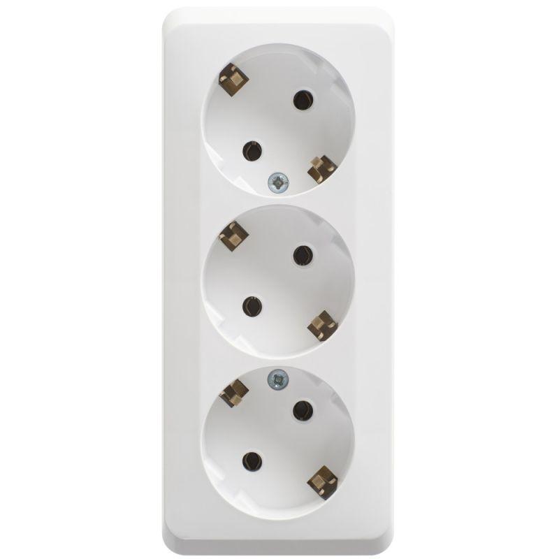 Розетка Systeme Electric (ранее Schneider Electric) ЭТЮД (белый, открытой установки) трёхместная с заземлением, без шторок предназначена для применения в сетях до 250В, на ток до 16А. Трёхместная розетка позволяет подключить три устройства в одном месте. Заземление обеспечивает безопасность при косвенном прикосновении. Она проста в установке и удобна в применении. Сделано в России.