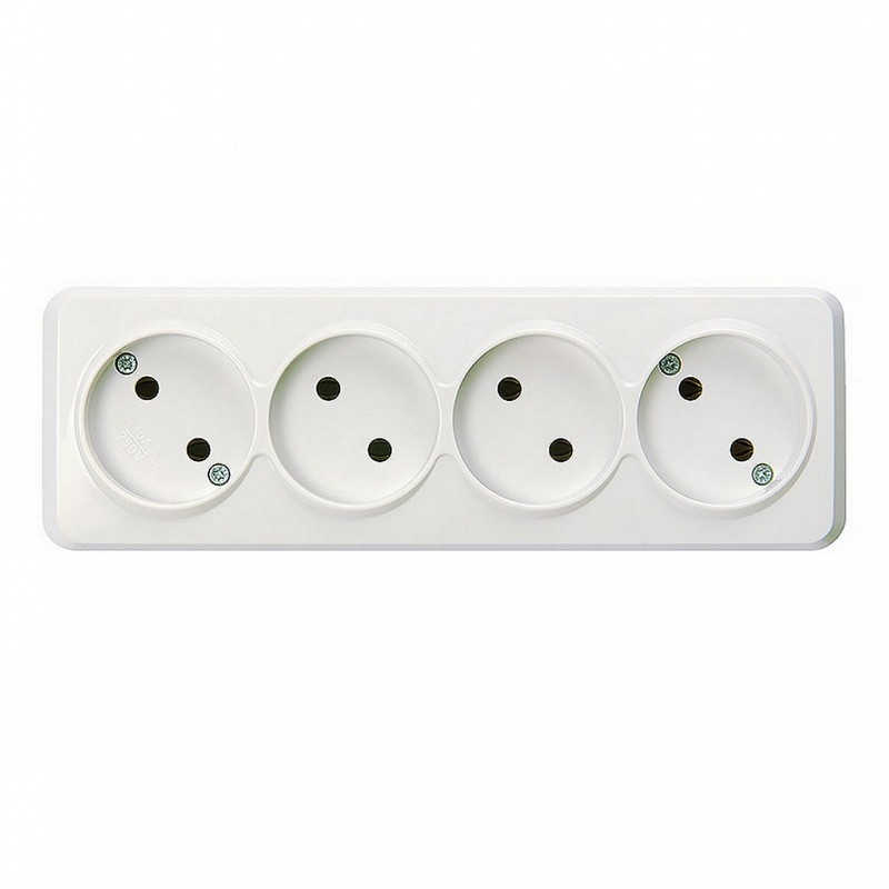 Розетка Smartbuy 4-местная 10А без заземления белая "Юпитер" (SBE-03w-10-S4-N) (8/80)Розетка Smartbuy 4-местная 10А без заземления белая “Юпитер” (SBE-03w-10-S4-N) (8/80)