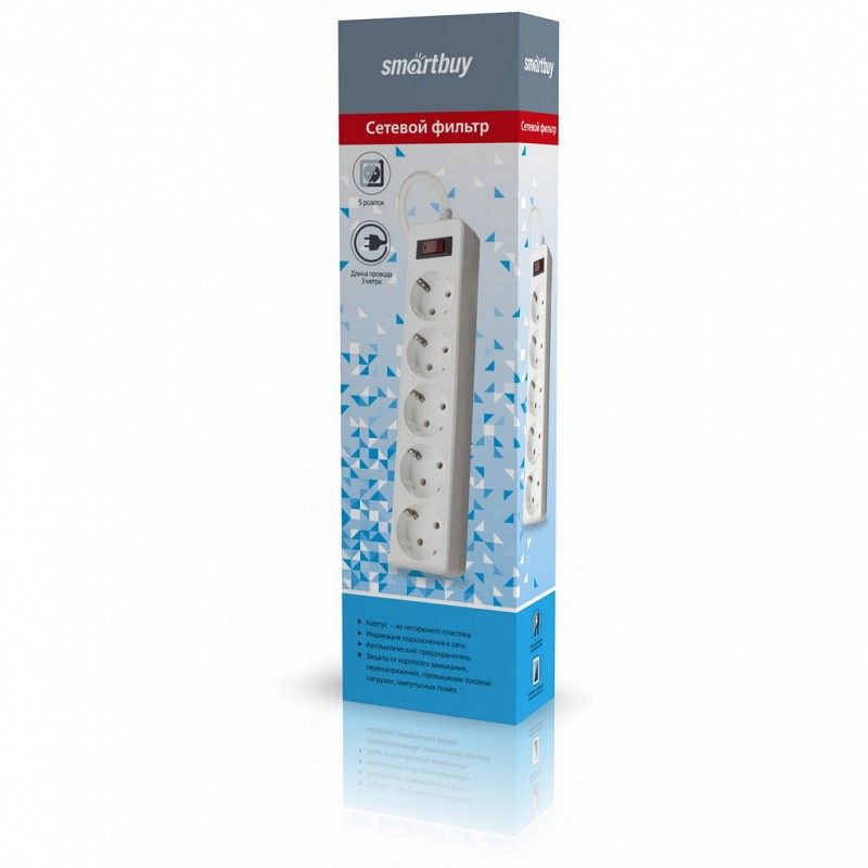 Сетевой фильтр Smartbuy One, 10А, 2 200 Вт, 5 розеток, длина 5,0 м, белый (SBSP-50-W)/35679,89 ₽