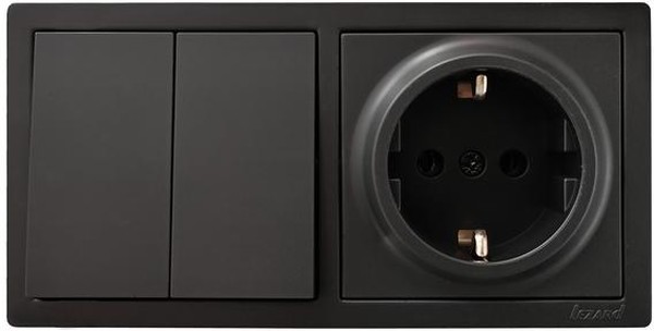 Блок ОП LETO (2-кл. выключатель + 1-м розетка с заземл.) горизонт. черн. бархат LEZARD 752-4200-170B