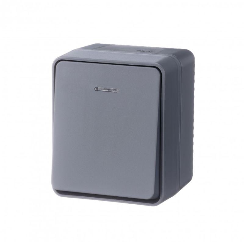 Выключатель 1-клавишный с подсветкой для открытого монтажа.