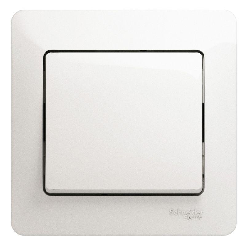 Выключатель Systeme Electric (ранее Schneider Electric) серии Glossa (в сборе, цвет перламутр) одноклавишный подходит для сетей 250 В, на ток 10 А.