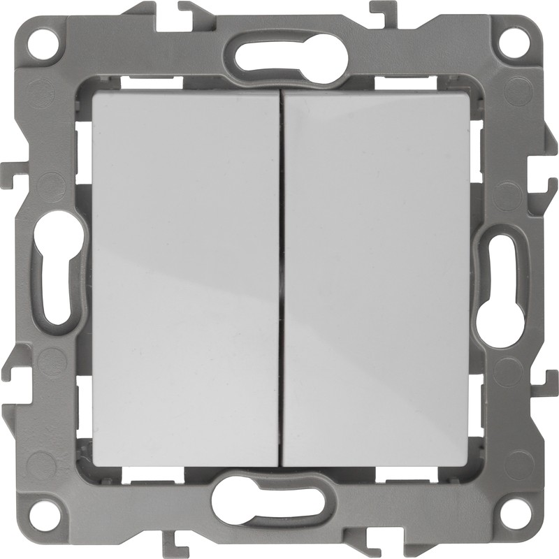 Выключатель 2-клавишный серии Эра 12 скрытой установки механизм цвет белый 12-1104-01. Номинальные характеристики 10А 250В . Сделан из поликарбоната, оснащёно автоматическими клеммами для быстрй и надёжной фиксации жил кабеля в механиме. Парные клеммы обеспечивают соединение шлейфом. Монтаж в подрозетник производится и на лапки, и на винты. Рамки приобретаются отдельно.