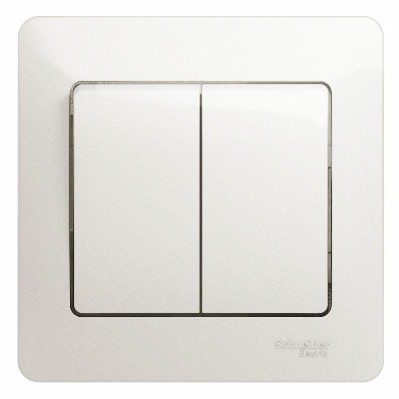 Выключатель Systeme Electric (ранее Schneider Electric) серии Glossa (в сборе, цвет перламутр) двухклавишный подходит для сетей 250 В, на ток 10 А.