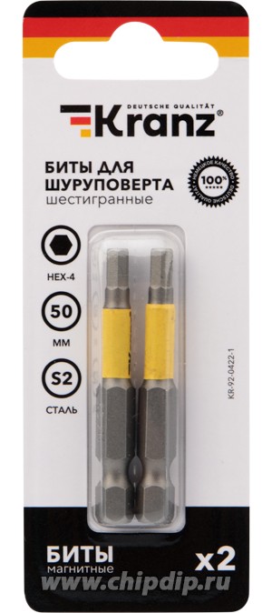 Бита шестигранная HEX4х50мм для шуруповерта (уп.2шт) Kranz KR-92-0422-1