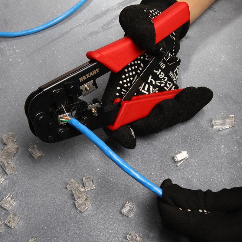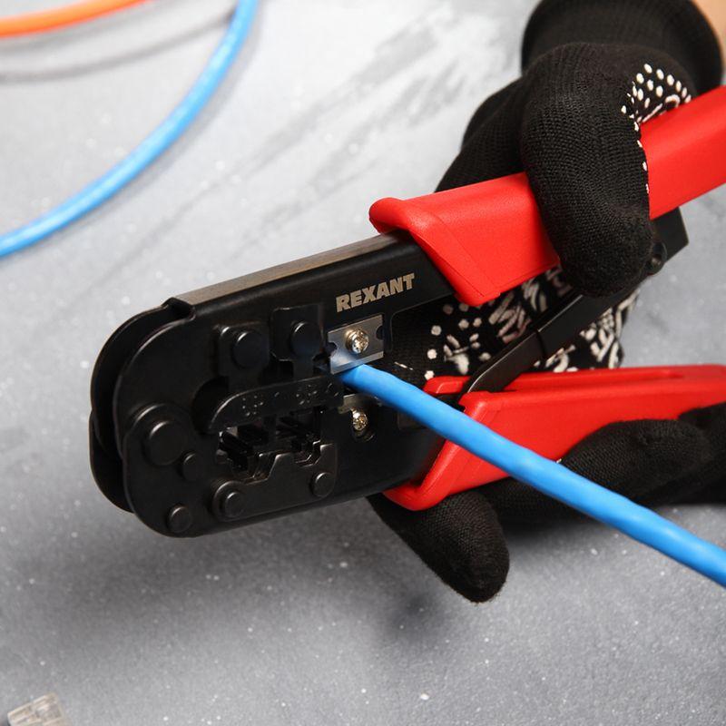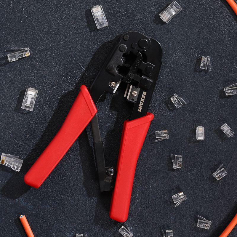 Инструмент предназначен для обжима разъемов RJ-45 (8P8C и 10P10C), RJ-12 (6P6C), RJ-11 (6P4C и 6P2C) и RJ-10 (4P4C) в зависимости от модели инструмента, обеспечивает высокое качество соединений, производительность и культуру монтажа.
