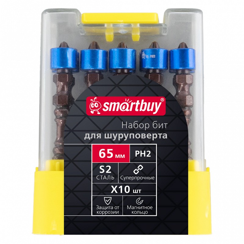 Набор бит для шуруповерта с магн. кольцом, PH2, 10 шт.сталь S2,двусторон.,фиксат.,Smartbuy tools