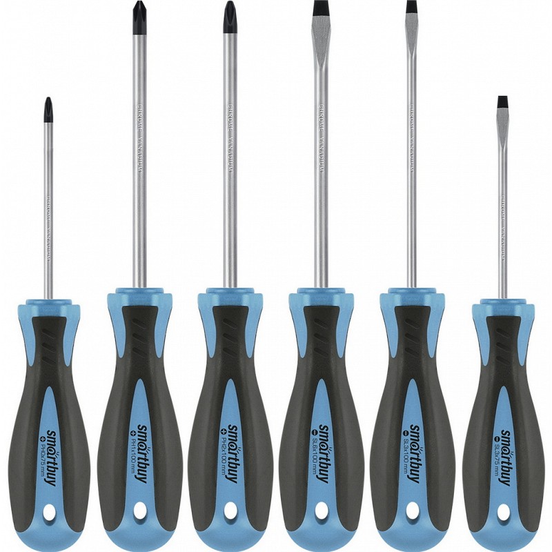 Набор отверток от известного бренда Smartbuy Tools. В комплекте 6 отверток с шлицевыми и крестовыми головками. Сталь CR-V обеспечивает долговечность и устойчивость к нагрузкам.