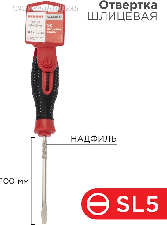 Отвертка шлицевая SL 5х100мм трехкомпонентная рукоятка сталь S2 Rexant 12-4722-1