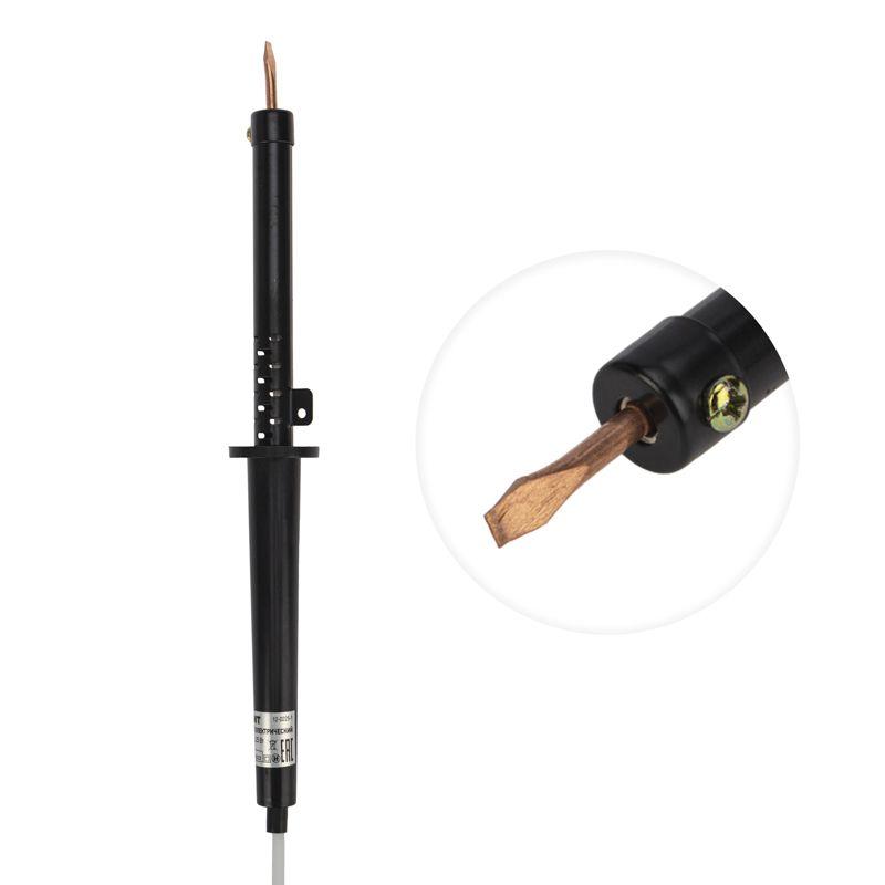 Электрический паяльник со спиральным нагревателем (ЭПСН) питается напрямую от сети 230 В, рабочая температура жала 300 °С, время разогрева до рабочей температуры — 8 мин., класс защиты — II