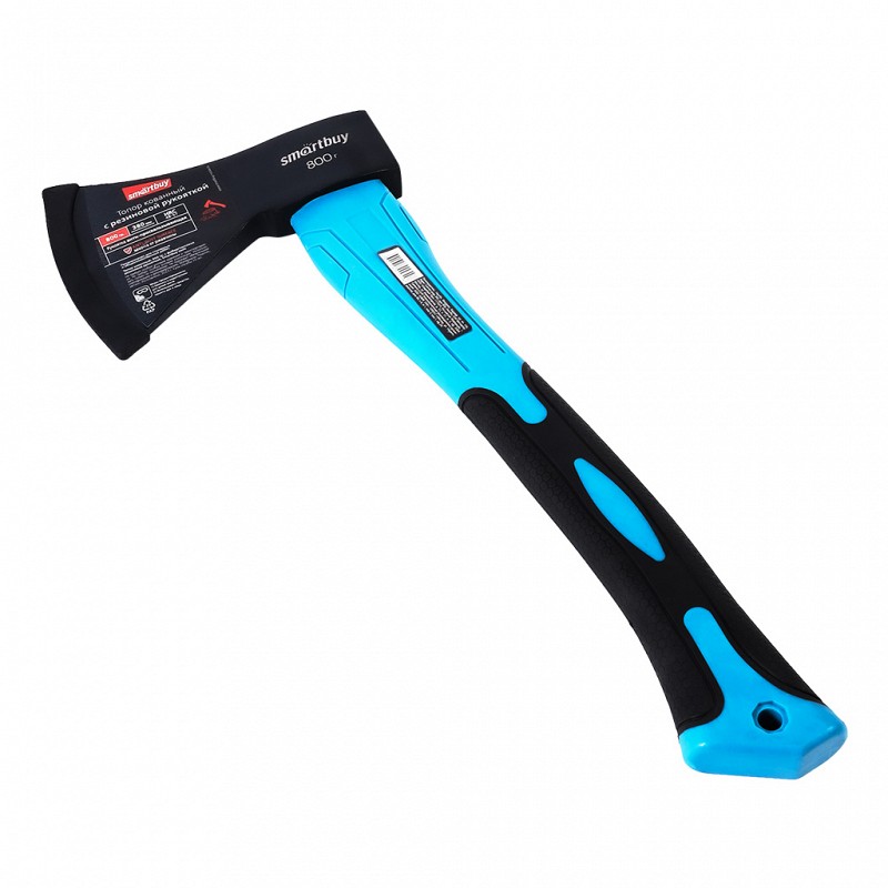 Топор кованный, 800 гр, с фиберглассовой резиновой рукояткой, Smartbuy tools