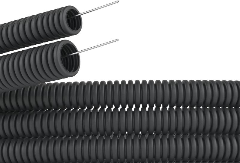 Труба гофрированная ПНД легкая d20мм с протяжкой черн. (уп.25м) Эра Б0020120
