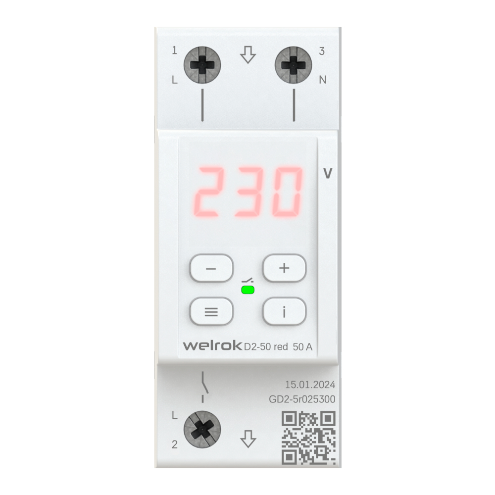 Реле напряжения Welrok D2 защищает оборудование от скачков и провалов напряжения, обрыва нулевого провода. Реле отключает нагрузку, если сетевое напряжение выходит за установленные пределы. Когда значение напряжения вернется в норму, нагрузка будет автоматически включена обратно.