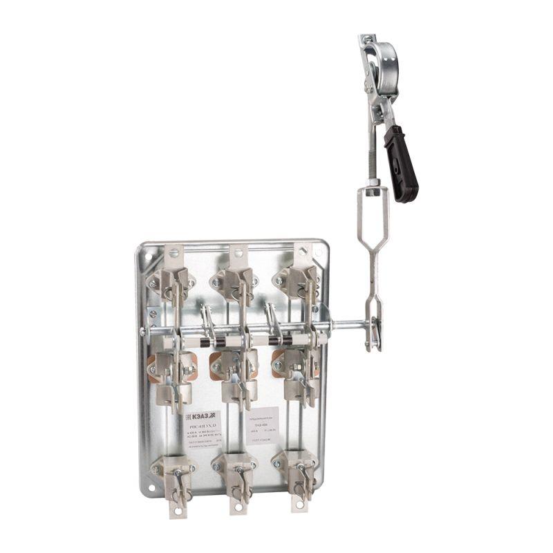 Выключатель-разъединитель 3 полюсный на номинальный ток 250 А, номинальный условный ток короткого замыкания Iq 20 (кА), где установлена передняя смещенная рукоятка, а максимальное сечение присоединяемых медных шин составляет 120 кв. мм.