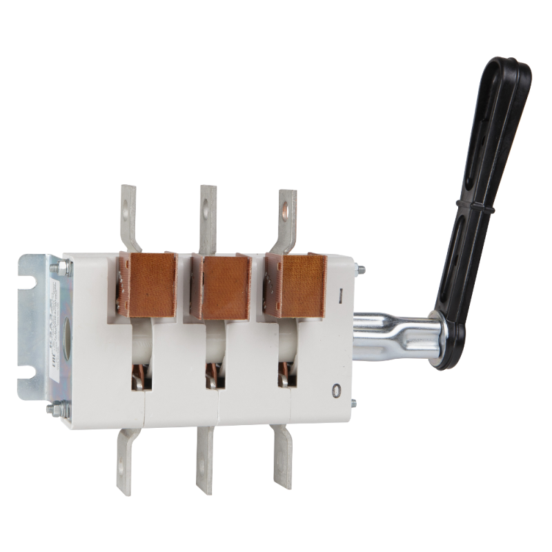 Выключатель-разъединитель 3 полюсный на номинальный ток 250 А, в котором установлена съемная рукоятка.